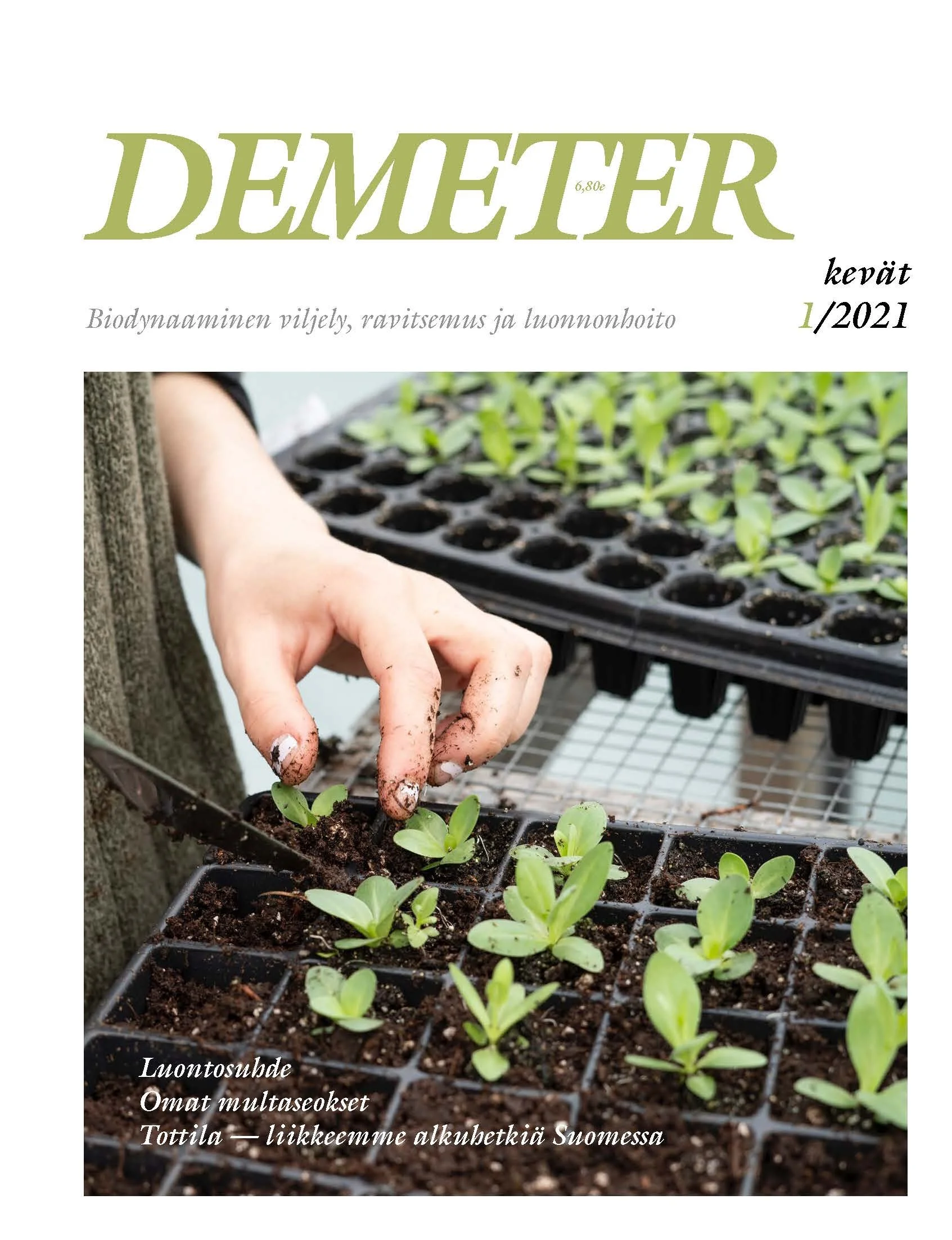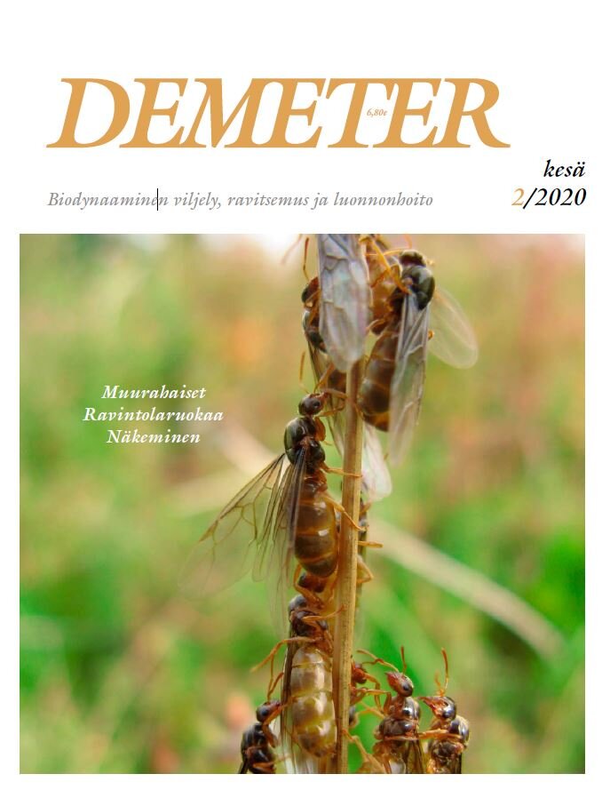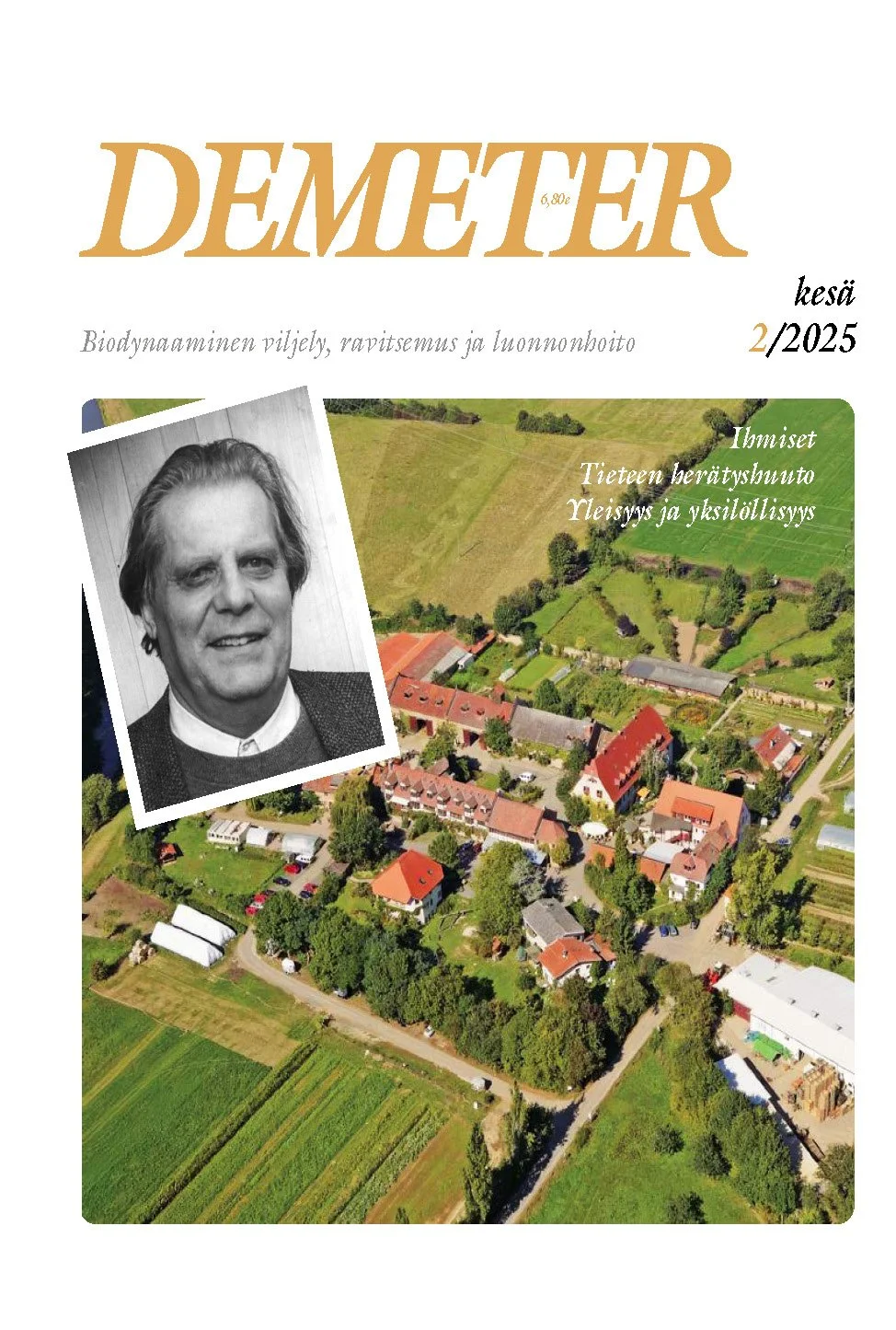 Biodynamisch-kirjasta on tässä lehdessä toinen luku, jossa kerrotaan, miten maatalous voi ja on maatilan ja markkinoiden välissä ja kuinka maanviljelijät ovat kosmoksen, torin ja supermarketin välissä. Erään kiitollisen lukijan toivomus oli saada uusille lukijoille uudestaan artikkeli: Fyysiset ja eteeriset voimat, jonka on kirjoittanut Magda Engqvist. Puheenjohtajamme kirjoittaa verkostoitumisesta Euroopan tasolla. Muistokirjoituksia meillä on sekä Kalervo Rekolasta, useamman kirjoittajan ja lähiomaisen voimin, sekä Anita Ellalasta Liisa Hertellin ja Kaisa Ellalan kirjoittamana. Rudolf Steinerin kuolemasta on kohta tämän lehden ilmestymisen jälkeen tasan 100 vuotta ja sen kunniaksi Sari Kalliokoski kertoo lyhyesti hänen elämästään maan päällä tällä kertaa.